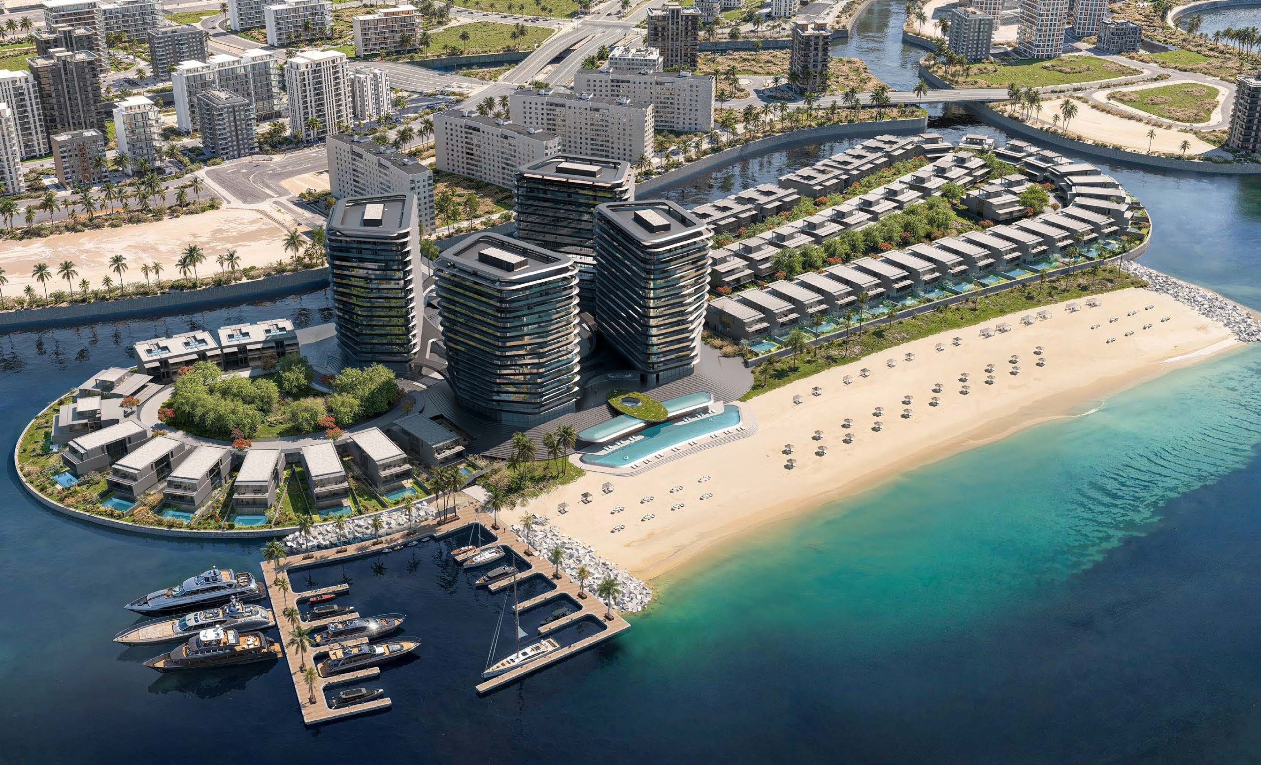 Brabus Island is a bold expression of elegance and innovation, set on the pristine shores of Al Seef District in Abu Dhabi. Born from a collaboration with the legendary German brand BRABUS, the project reimagines luxury living through the lens of sleek automotive-inspired design. From the moment you arrive, the island exudes power and precision—with striking architecture, sculptural forms, and dramatic lines that echo the curves of a supercar, all nestled within a calm, turquoise waterfront setting.