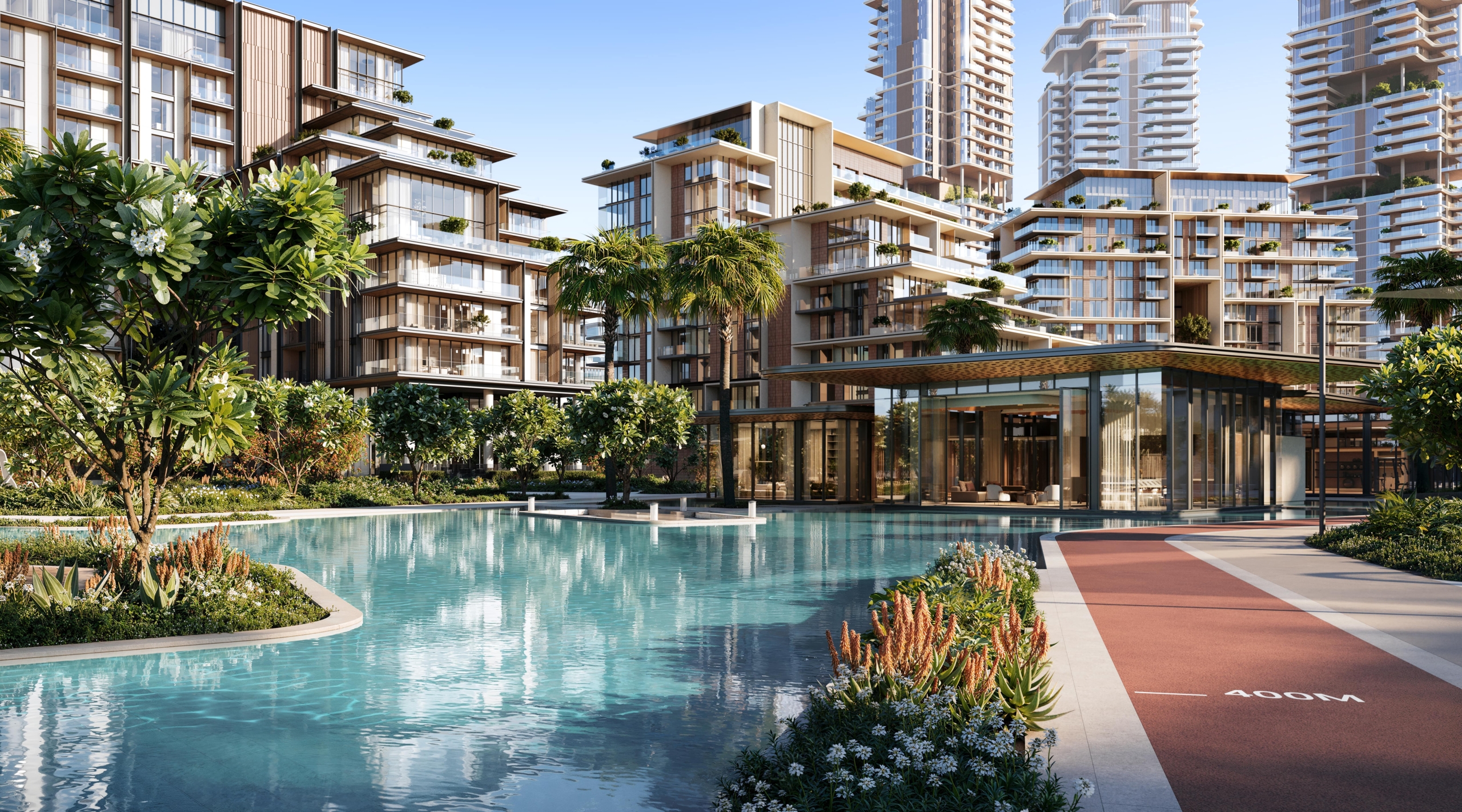 Water plays a central role at City Walk Crestlane, enhancing the atmosphere and creating a harmonious balance throughout the community. Every building is designed to face the water, ensuring that it is always within view, whether you’re gazing out from your home or enjoying one of the many outdoor spaces. The reflective surfaces and gentle ripples of the water invite connection and movement, allowing residents to experience the calming effects of nature, whether through a leisurely stroll, a refreshing dip, or simply relaxing by the water’s edge.