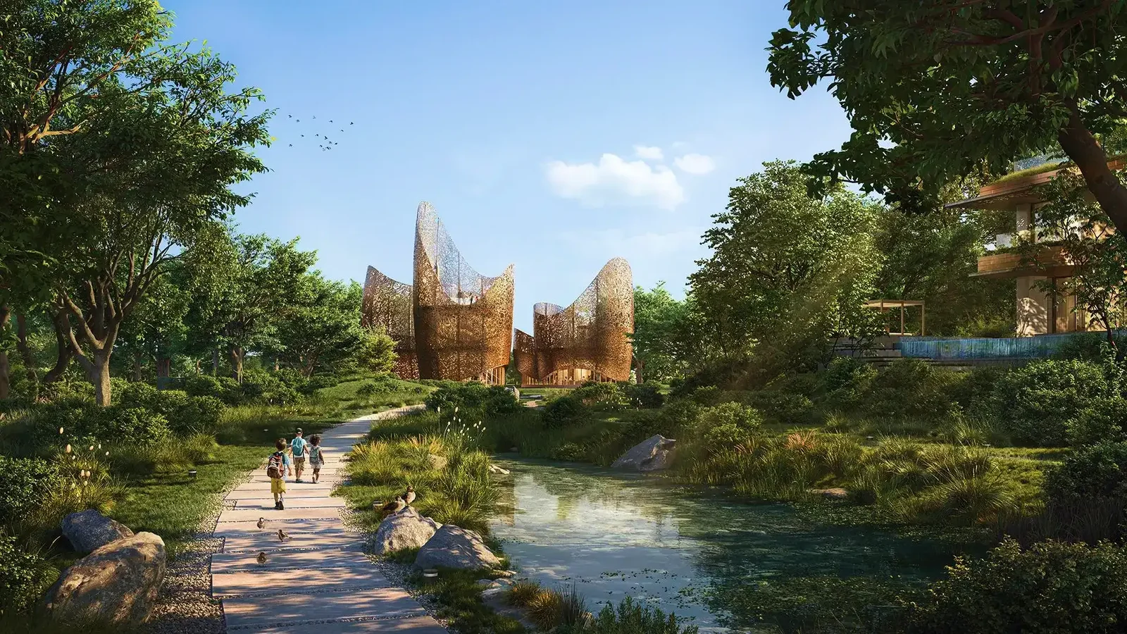 The Wilds integrates energy-efficient designs, smart home automation, and eco-friendly landscaping to promote sustainable living.