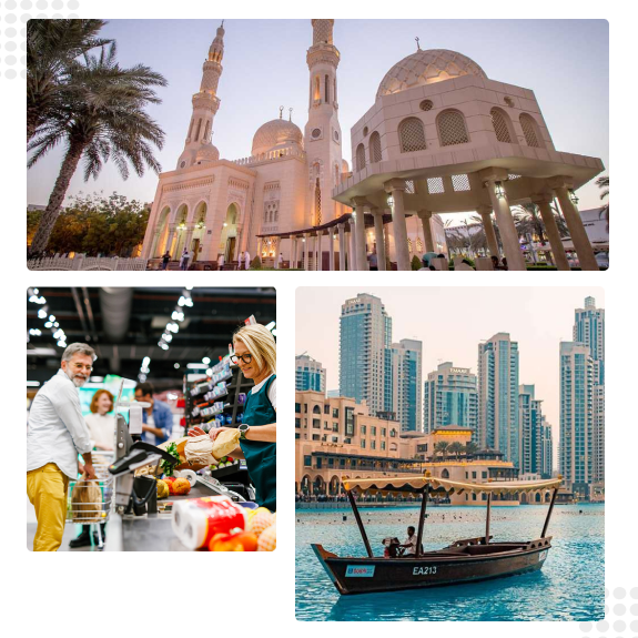 В центре Дубая проживают представители различных конфессий. удобный доступ к местам отправления религиозных обрядов. В самом районе расположено несколько мечетей, в том числе Мечеть Сук Аль Бахар и Мечеть в Дубай Молле, Оба легко доступны для ежедневных молитв.