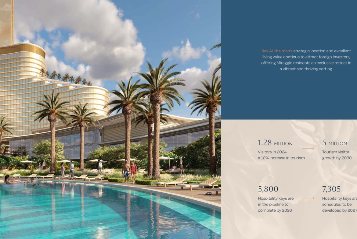 Miraggio - это скульптурный архитектурный шедевр, расположенный на берегу острова Аль-Марджан, Рас-эль-Хайма. Вдохновленные движением моря и спокойствием природы, его каскадные террасы и изогнутый фасад органично вписываются в окружающий ландшафт. Здание приглашает жителей в пространство спокойствия и вневременной элегантности - где каждый момент формируется ритмом океана, теплом солнца и органичным течением дизайна. Miraggio - это больше, чем просто резиденция, это святилище искусства, архитектуры и чувственного благополучия. Новый проект на острове Аль Марджан.