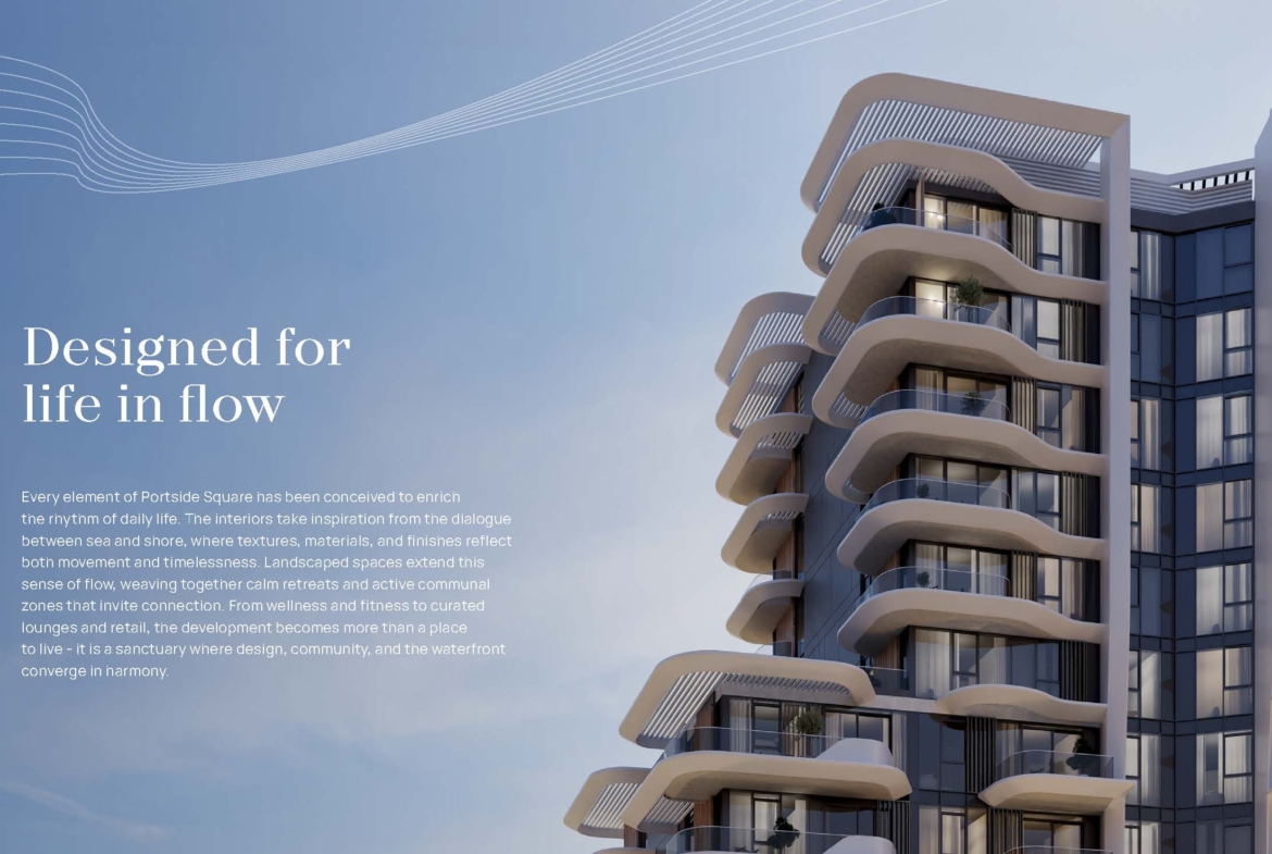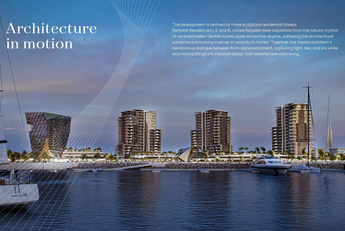 Площадь Портсайд на Мина Рашид это новое представление на набережной от знаменитого Ellington Properties В здании расположены апартаменты с 1, 2 и 3 спальнями на набережной. Философия архитектурного мастерства во всей ее полноте, где экстерьер здания тактично отображает баланс волн и парусов с новыми линейными элементами и морем в одноэтажном океаническом штрихе. Пластины стекла используются для демонстрации обширных видов на гавань, что, в свою очередь, играет с естественным светом в продуманных интерьерах. Современный стиль Майами и спокойствие на берегу моря также хорошо сочетаются в дизайне - визитная карточка полированного образа жизни на берегу моря.