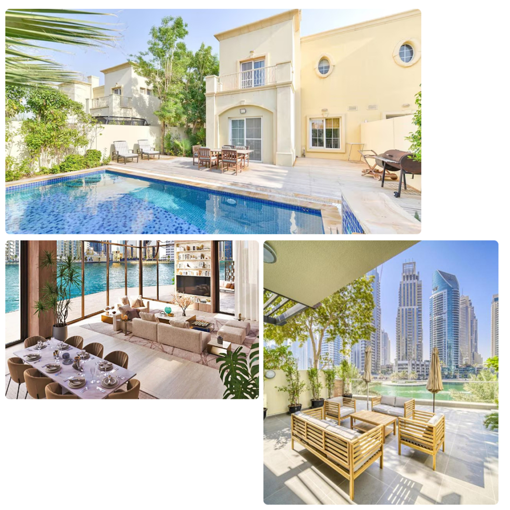 Villa veya şehir evi satın almak söz konusu olduğunda, yatırım getirisi (ROI) stüdyo ve dairelere kıyasla farklı bir eğilim izlemektedir: mülk ne kadar büyükse, gelir de o kadar yüksek olmaktadır. Örneğin, beş yatak odalı bir villa yıllık 5,2% getiri ile kârlılıkta başı çekerken, dört yatak odalı birimler 4,2% getiri sağlamaktadır. İki ve üç yatak odalı birimler ise sırasıyla 3,2% ve 4,1% getiri sağlamaktadır.