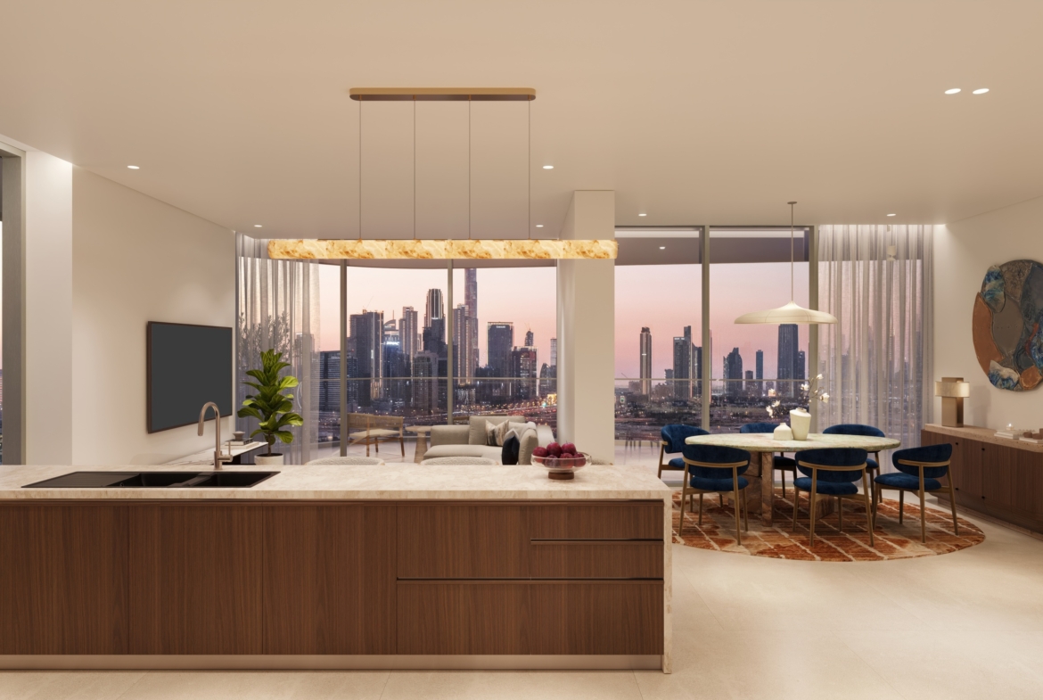 Every apartment at Artistry Residences is delivered fully finished with floor-to-ceiling glazing, European kitchens fitted with premium branded appliances, stone-clad bathrooms, and engineered wood flooring in living areas. Smart-home readiness, energy-efficient glazing, and concealed lighting systems are standard throughout. Select Group’s design team has prioritized proportion, natural light, and a gallery-like sense of calm across every layout.